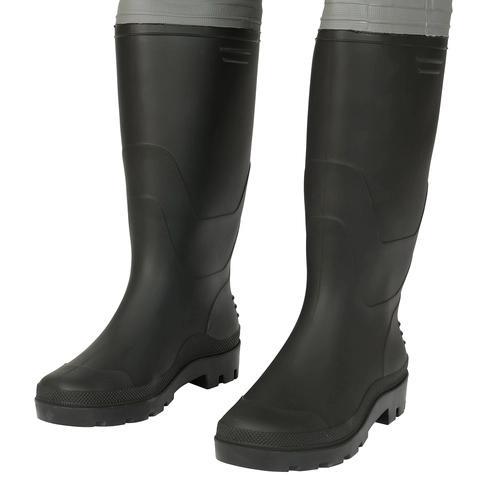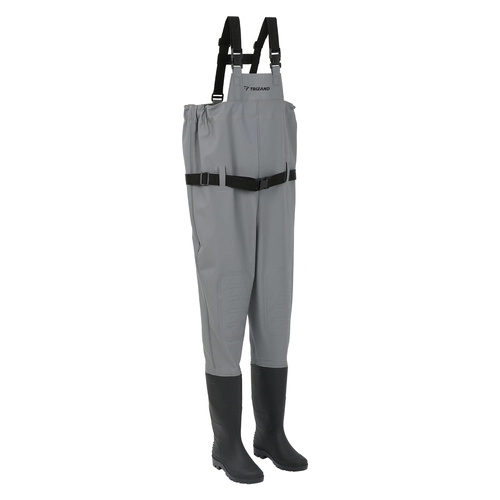 Водоустойчиви рибарски ботуши тип гащеризон TRIZAND осигуряват максимален комфорт при газене във вода благодарение на издръжливия PVC материал и регулируемите презрамки. Тяхната пodметка против хлъзгане гарантира сигурно сцепление на всякакъв терен.