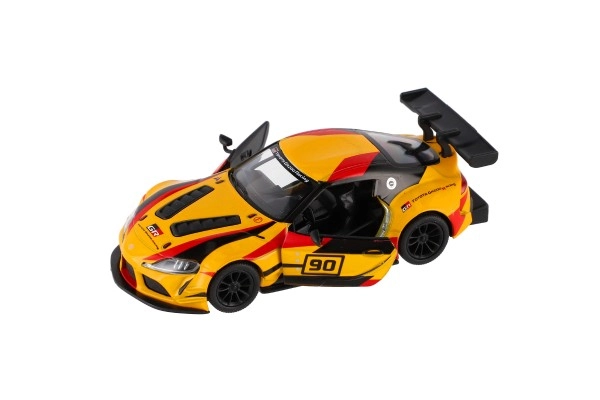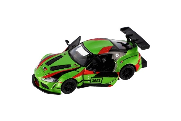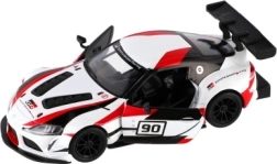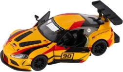 Този състезателен модел на автомобил Toyota GR Supra Racing е перфектният спътник за всеки фен на моторните спортове. Металният материал осигурява устойчивост и дълъг живот, а детайлната изработка с отварящи се врати придава реалистичен вид. Поставете го на рафт или го изведете на състезателната писта в историите на вашите деца. Моделът е наличен в четири цветови варианта, така че всеки ще открие своя любим.