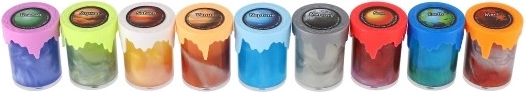 Насладете се на часове забавление с металически слайм във визия на планети. Прозрачната кофичка позволява веднага да видите цвета и текстурата; слаймът се разтяга приятно, не се къса и е идеален за сензорна игра и релакс.