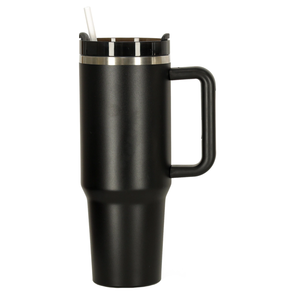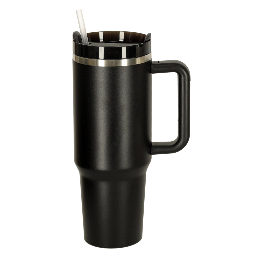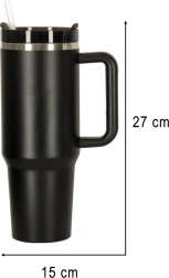 Термо чаша с голям капацитет 1,2 л поддържа напитките дълго време топли или студени благодарение на двойната изолация. Има удобна дръжка за сигурен захват, капак с уплътнение и отвор за сламка за комфортно пиене в движение. Идеална за кола, офис, тренировки и излети.