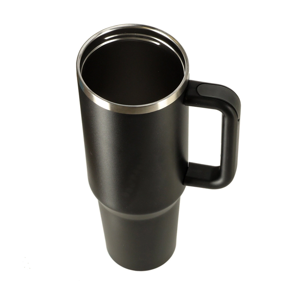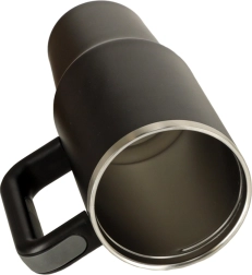 Голямата ергономична дръжка улеснява пренасянето, а стесненото дъно пасва на повечето държачи за чаши в автомобили – идеално за път.