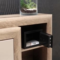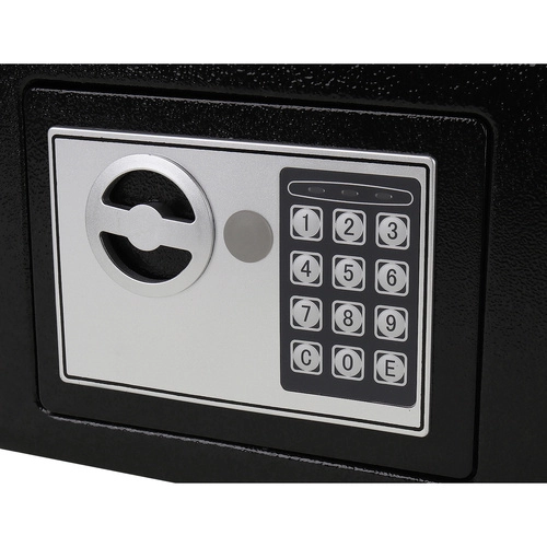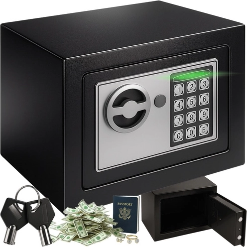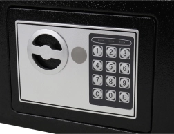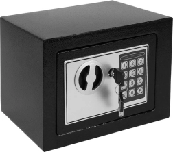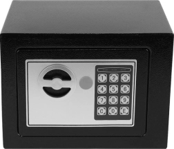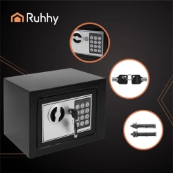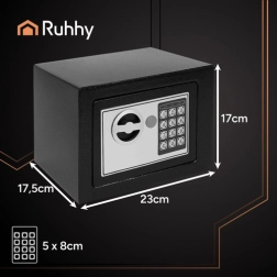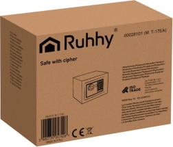 Компактният сейф RUHHY предпазва вашите ценности благодарение на електронната кодова ключалка, автоматичното блокиране след 3 грешни опита и аварийното отваряне с ключ. Идеален за дом, офис и хотел, изработен от здравa стомана, със светлинна и звукова сигнализация и възможност за монтаж на стена.