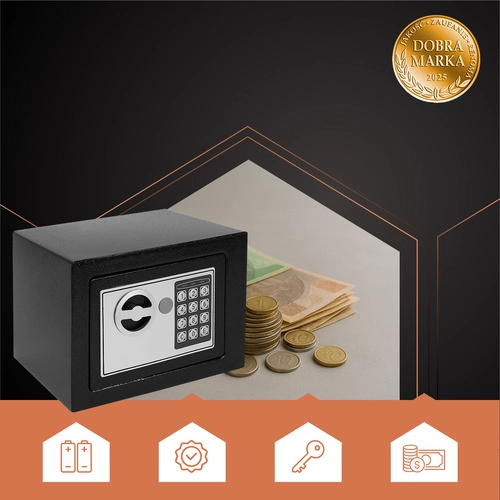 За по-висока безопасност сейфът е оборудван със звукова и светлинна сигнализация и автоматично заключване след три грешни опита. Захранването се осигурява от широко достъпни AA батерии, инсталацията е лесна, а в комплекта ще намерите и монтажни аксесоари.