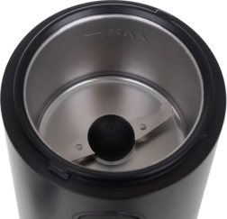 Тази мелачка предлага компактен дизайн с мощен 150 W мотор, издръжлив двуостър нож и отделение за кабела. Обозначението BPA FREE гарантира безопасност при контакт с храни.