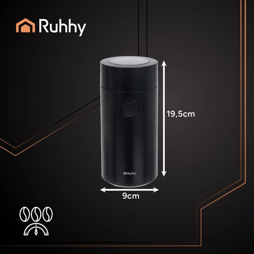 Леснота и ефективност на една ръка разстояние – с електрическата мелачка RUHHY ще приготвите прясно смляно кафе, ароматни подправки или ядки за секунди. Интелигентното управление на времето за мелене ви позволява да избирате едрина: от едро мелене (5 секунди) до много фино еспресо (20 секунди).
