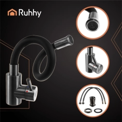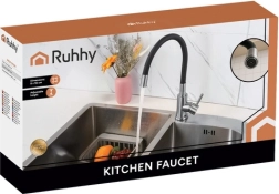 Кухненският смесител Ruhhy носи комфорт и икономия във вашата кухня благодарение на гъвкавия чучур 360°, превключвателя на струята и перлатора. Насладете се на лесен монтаж, дълъг живот и лесно почистване.