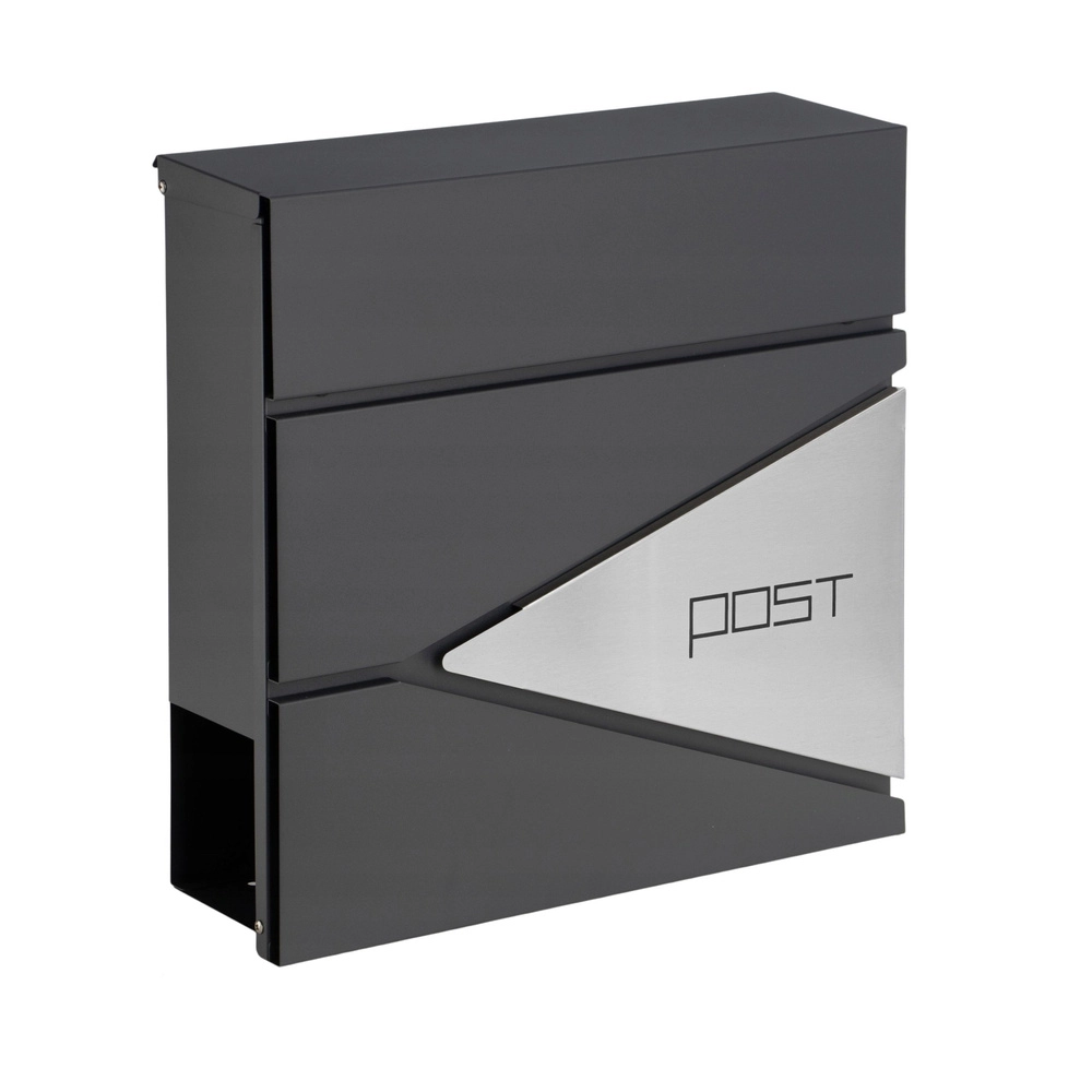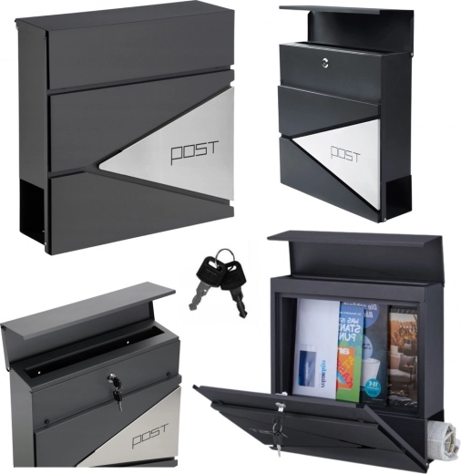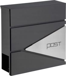 Тази антрацитова пощенска кутия се отличава с изчистен дизайн, подчертан от геометрични изрези и минималистичен надпис „POST“. Благодарение на устойчивите материали и праховото покритие е идеална за дългосрочна външна употреба.