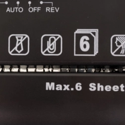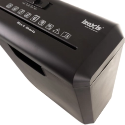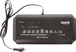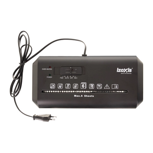Мощният шредер IZOXIS с обем на коша 10 l предлага автоматично стартиране/стоп, обратен ход срещу засичане и ниво на сигурност P‑2 за всекидневно унищожаване на документи. Реже на ленти 6 mm, обработва 6 листа A4 едновременно и работи със скорост 2 m/min – идеален за домашен офис и малки фирми.