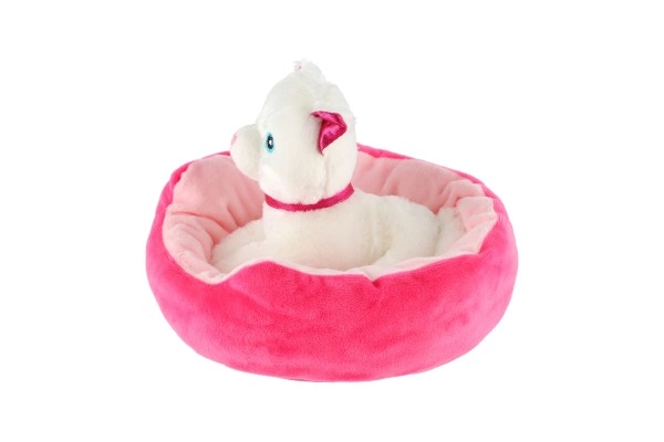 Подарете радост на вашето дете с плюшена животинка, която има собствено удобно розово легълце. Децата ще се наслаждават на нежни прегръдки, приспиване на животинката и ежедневни игри на грижа за домашен любимец.