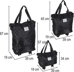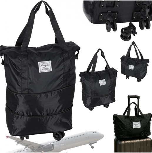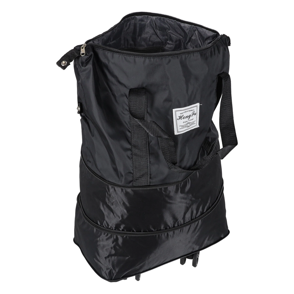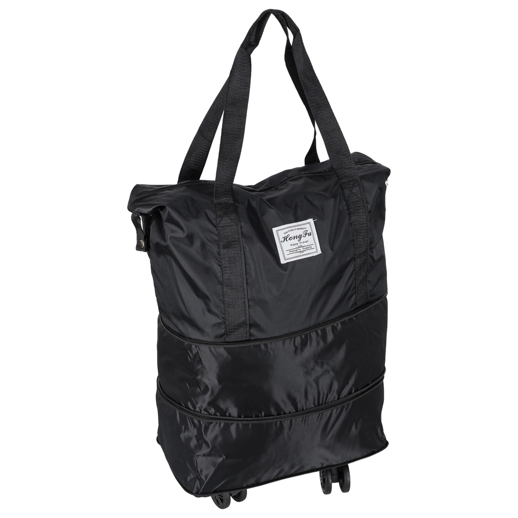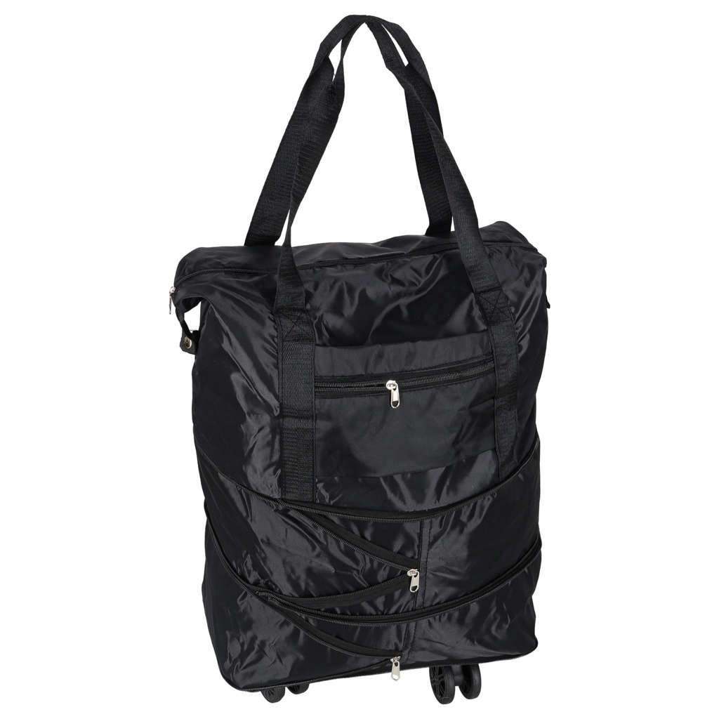 Практична сгъваема пътна чанта на колелца за уикенд и по-дълги пътувания. Предлага до три нива на разгъване, обем около 50 литра, водоустойчив оксфордски полиестер, въртящи се на 360° колелца и здрав цип. Благодарение на сваляемите колелца и добре обмисленото вътрешно разпределение е идеална за удобно опаковане и лесно маневриране.