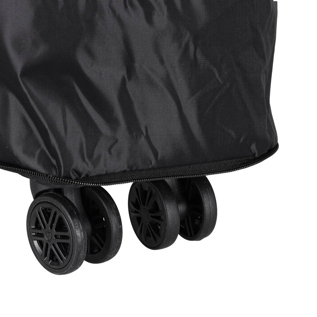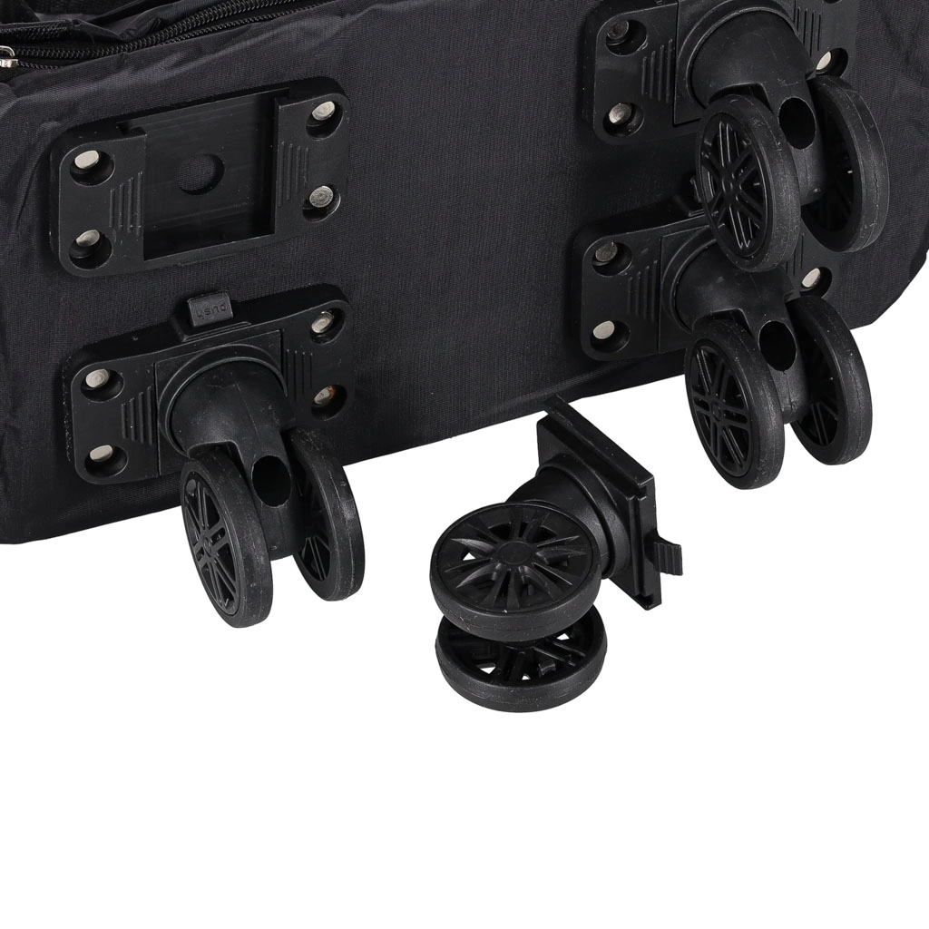 Лесното маневриране се осигурява от въртящи се на 360° колелца от PVC, които са сваляеми и поставени върху здрави релси. Практичните външни и вътрешни джобове държат дребните вещи под ръка, страничните дръжки и високите ръкохватки улесняват пренасянето и тегленето.