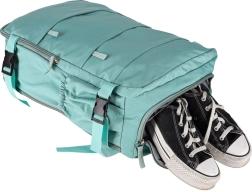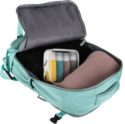 За стабилност на багажа служат четири компресионни ремъка, които намаляват обема и задържат съдържанието на място. Подплатените презрамки с мрежа и горната дръжка с мрежа осигуряват удобно и сигурно пренасяне. Надеждни ципове и добре обмислена организация правят тази раница отличен спътник за пътуване.