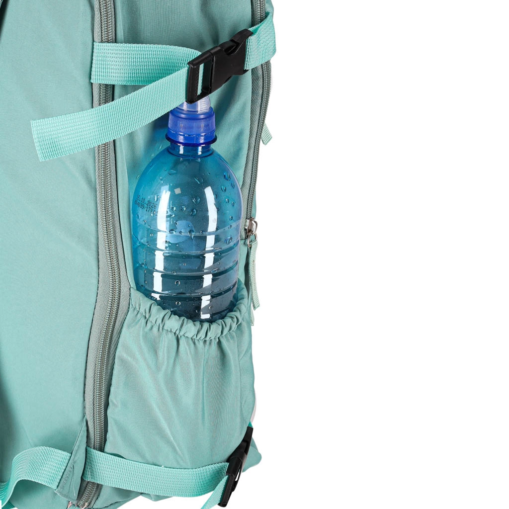 Еластичните мрежести джобове отстрани надеждно държат бутилка с вода или чадър, за да имате хидратация винаги под ръка.