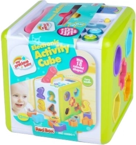 Кутията е оборудвана със светлинни и звукови ефекти, които засилват удоволствието от играта и подпомагат развитието на сетивното възприятие на детето. Освен това, благодарение на практичната дръжка, тя се пренася лесно.