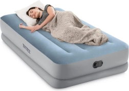 Търсите удобно решение за гости, пътуване или вила? Надуваемият матрак Intex комбинира комфорт, стабилност и мобилност. Велурената повърхност е приятна на допир и предотвратява плъзгането на чаршафа, а подсилените камери Fiber-Tech и рамката Dura-Beam придават здравина без неприятно люлеене.