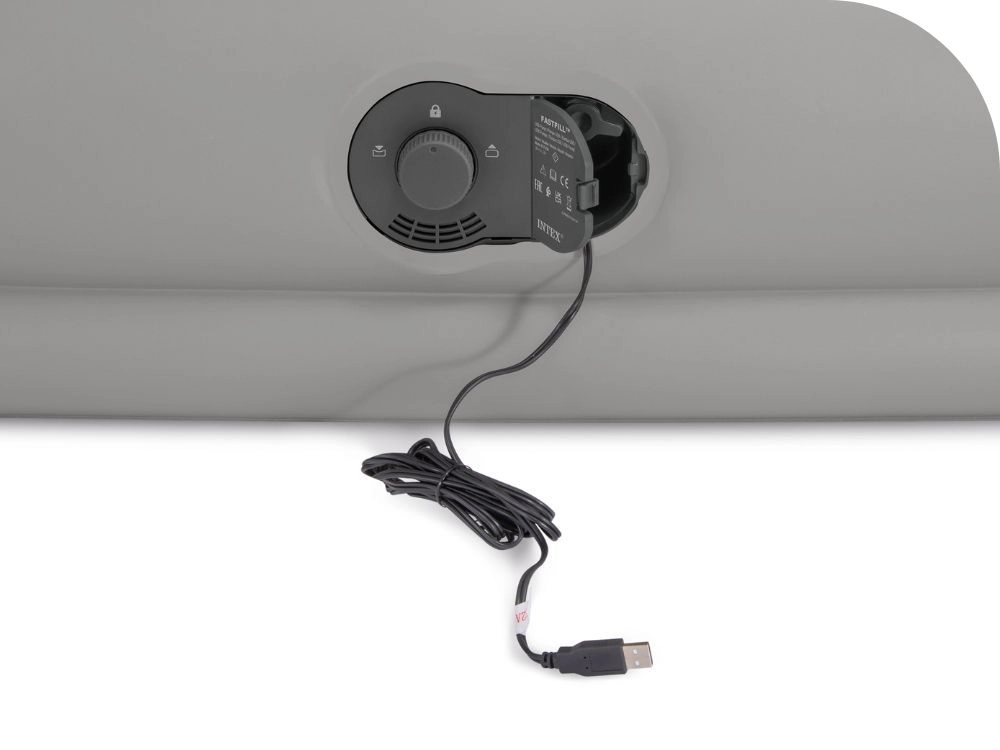 Вградената USB помпа 5V/2A надува матрака за приблизително 240 секунди. Захранвате я лесно от пауърбанк, зарядно за телефон, USB порт или автомобилно зарядно – идеално за дома и път. Сертификацията AirLock гарантира плътност и надеждност дори при честа употреба.