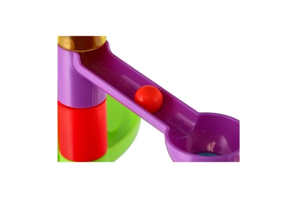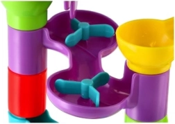 Тази пластмасова писта за топчета с 55 части позволява на децата да строят разнообразни трасета и да изпробват кое топче е най-бързо. Благодарение на различните препятствия и въртящи елементи всяко спускане е различно и изпълнено с напрежение. Комплектът развива креативността, търпението и координацията око–ръка.