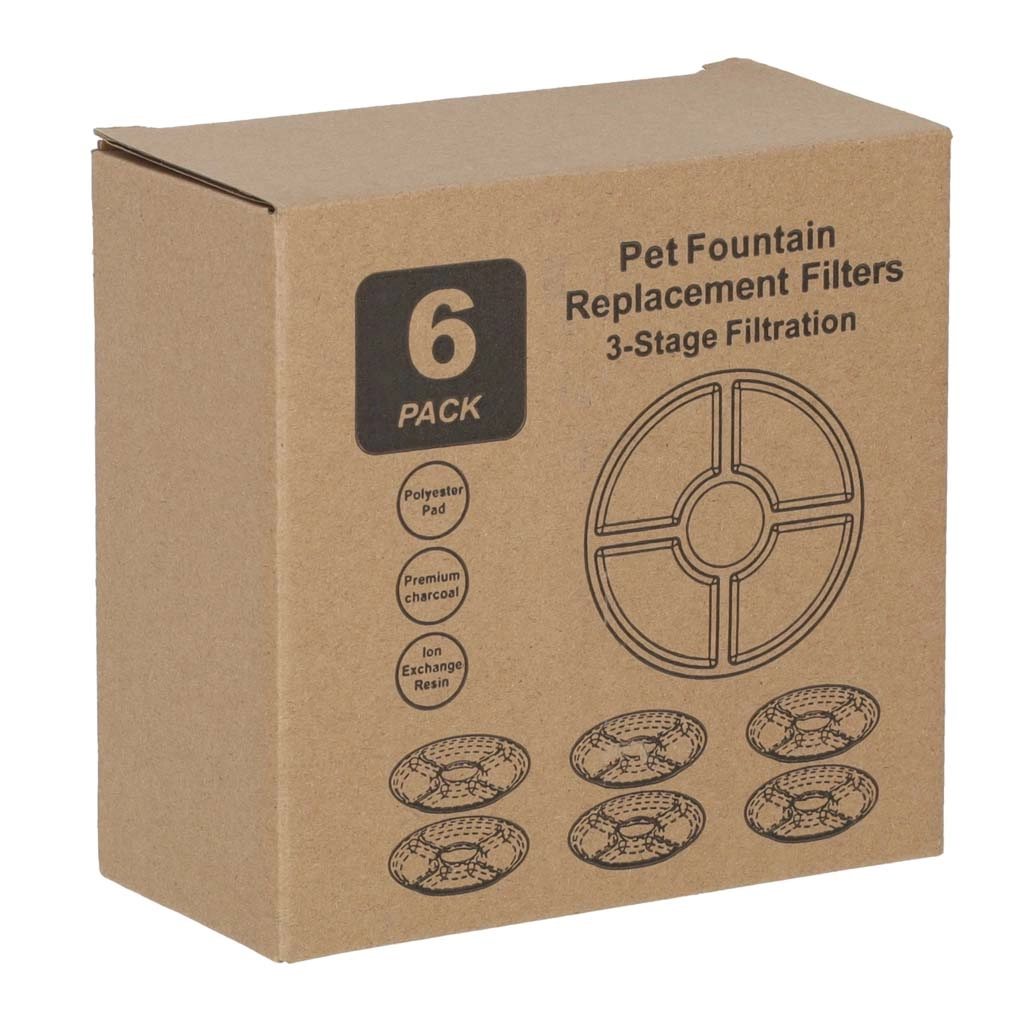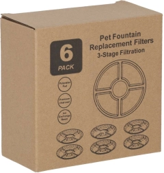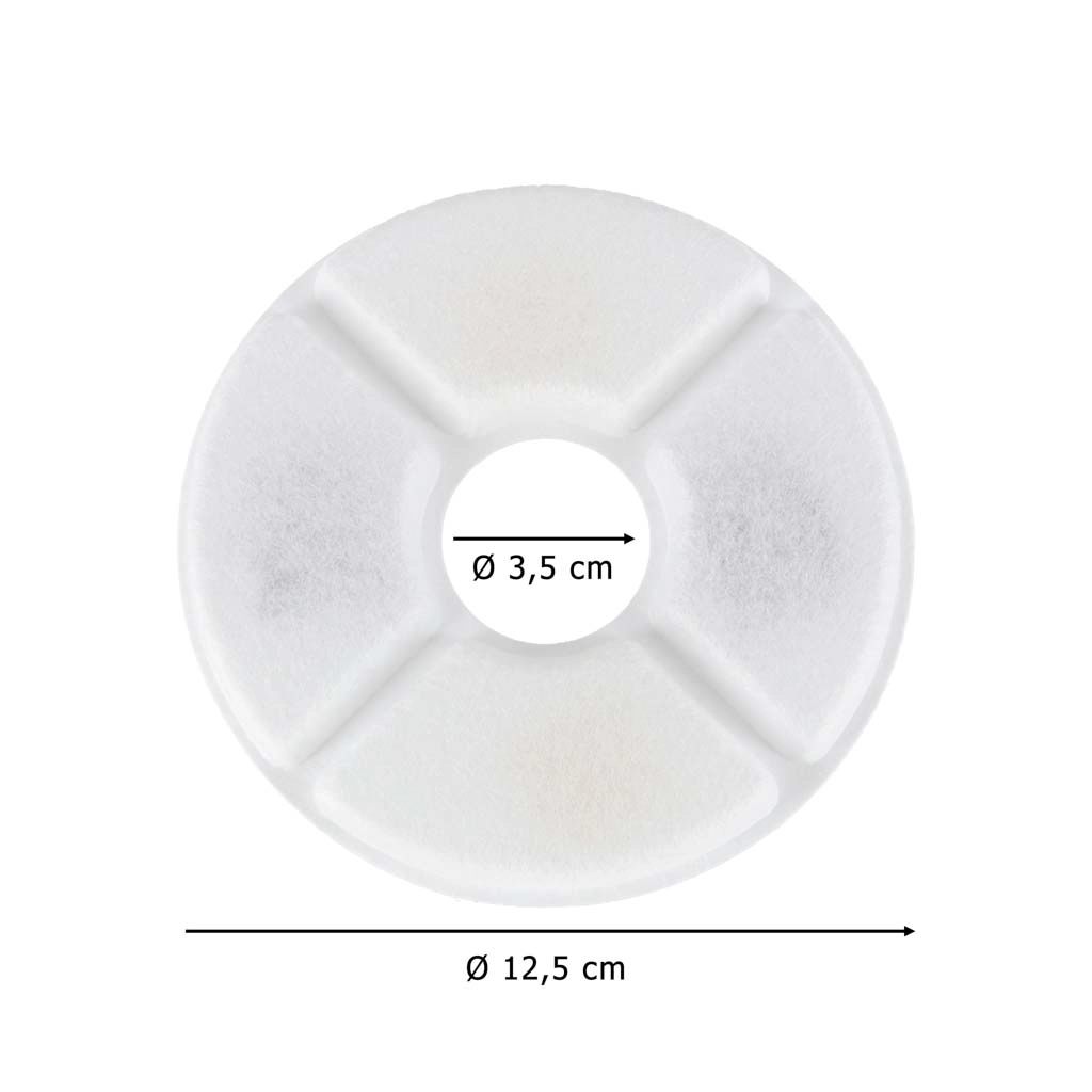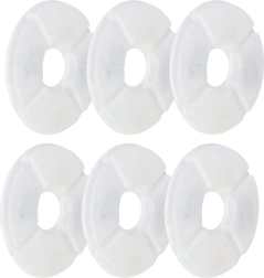 Този комплект съдържа 6 кръгли филтъра, проектирани за фонтани за домашни любимци. Благодарение на комбинацията от активен въглен и йонообменна смола те подобряват вкуса и качеството на водата, намаляват миризмите и улавят фини частици. Редовната смяна на филтъра подпомага по-добрия воден режим на вашия любимец и помага да поддържате фонтана в перфектно състояние.