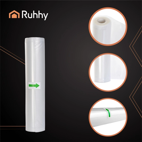 Релефното вакуумно фолио RUHHY е надеждно решение за дългосрочно съхранение на храни без загуба на вкус и аромат. Прозрачната страна елегантно подчертава вида на месо, риба, сирена и зеленчуци, докато структурираната страна гарантира ефективно извличане на въздуха и качествено запечатване. Универсалният ръкав позволява да отрежете точно нужната дължина – без излишно разхищение на материал.