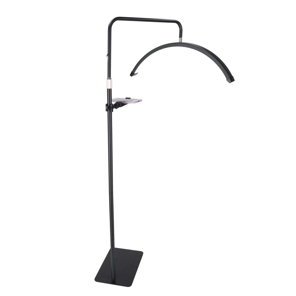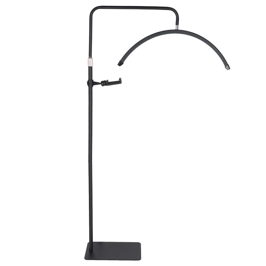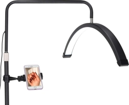 Професионална LED дъговидна лампа за козметика с мощност 36 W осигурява равномерно, безсенчесто осветление за lash & brow стилизиране, маникюр, грим и заснемане. Предлага широк диапазон на цветната температура 3000–5600 K, 10 нива на яркост и висока точност на цветопредаването RA>90 за вярно възпроизвеждане на детайлите. Стабилната метална стойка с регулируема височина и държач за телефон улеснява работата и създаването на съдържание за социални мрежи.