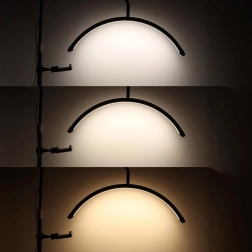 Настройте цветната температура 3000–5600 K от топла до студена и фино регулирайте яркостта в 10 стъпки, така че да отговаря на текущата дейност. Стабилната основа и стойката с регулируема височина (140–180 cm) заедно с дъгата 64 cm осигуряват комфортно осветяване от идеален ъгъл. Вграденият държач за телефон е перфектен за запис на работата или консултация с референции.