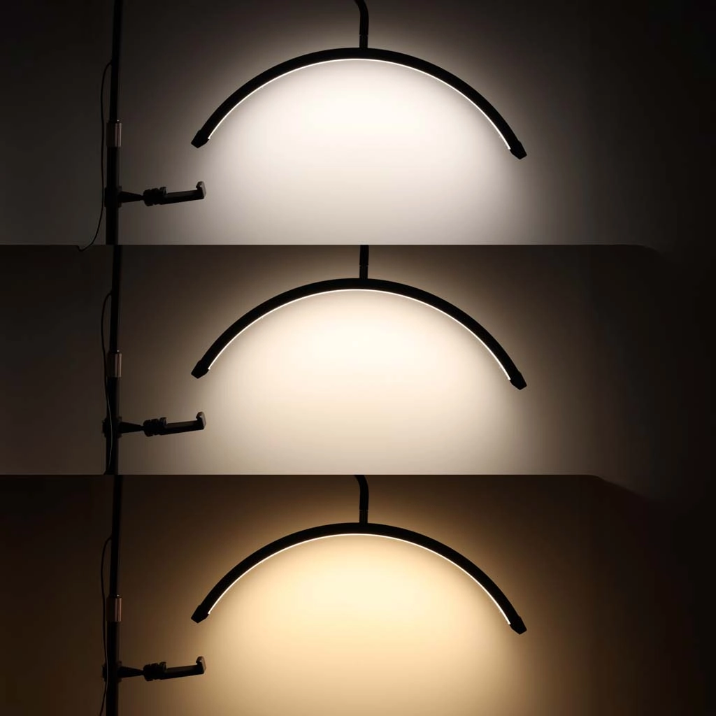 Търсите надеждно осветление за прецизни козметични процедури, фотография или създаване на съдържание? Тази LED дъговидна лампа с широк светлинен обръч равномерно покрива работната площ и елиминира сенките. Благодарение на високия CRI (RA>90) ще виждате цветовете вярно – идеална за lash & brow, грим, дизайн на нокти и деликатни процедури за лице.