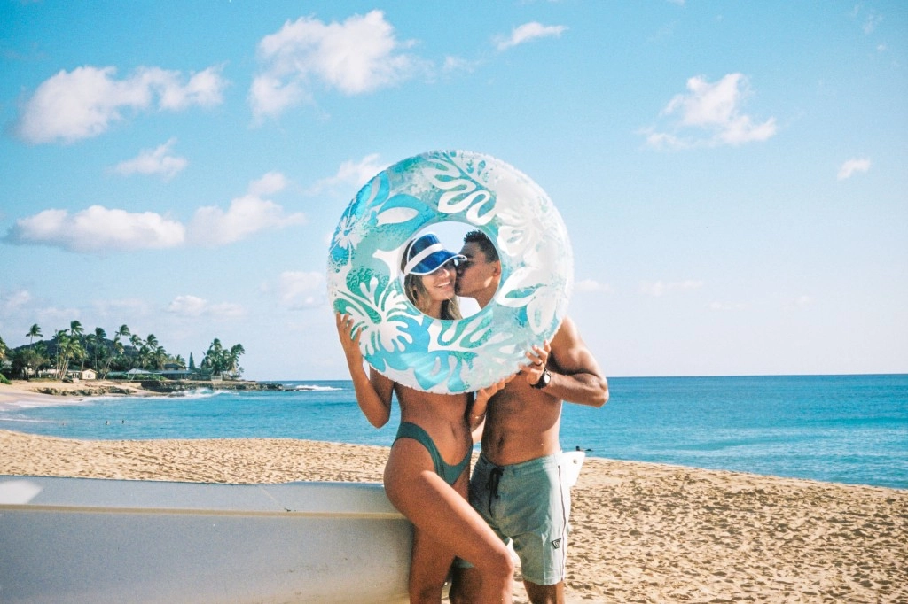 Яркият хавайски цветен принт придава цвят на вашето лято и е идеален както за басейна, така и за плажа.