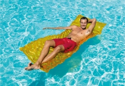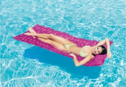 Благодарение на вълнообразната форма шезлонгът се сгъва и прибира лесно в чанта дори без пълно изпускане. Двойно заварените ъгли увеличават издръжливостта, а товароносимостта до 100 кг позволява удобно ползване от повечето възрастни. Изберете от атрактивни цветове и се насладете на комфортни слънчеви бани и спокойно поклащане върху водата.