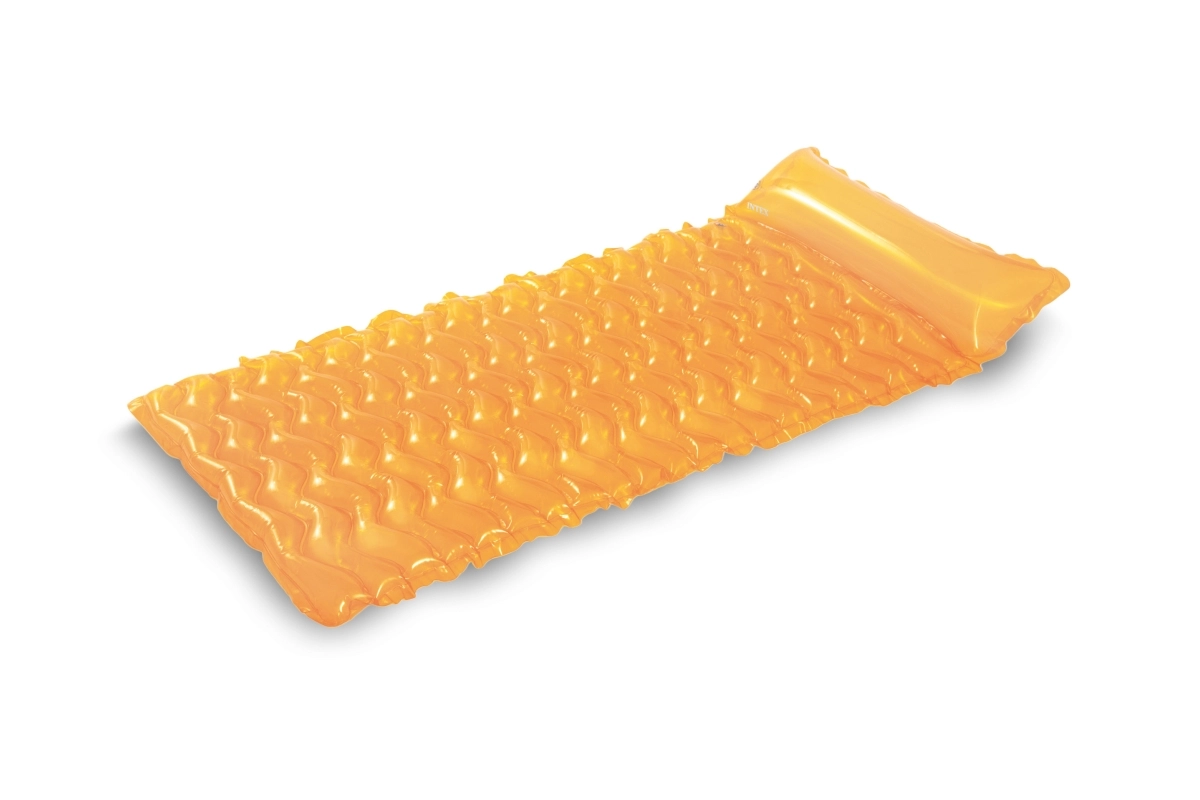 Надуваемата постелка с вълнообразен дизайн е идеална за релакс до басейна и за почивка край вода. Широката площ гарантира удобно лежане, интегрираната възглавница поддържа врата и главата, а качественият винил издържа на летните забавления. Конструкцията с две камери осигурява по-висока безопасност и стабилност на повърхността.