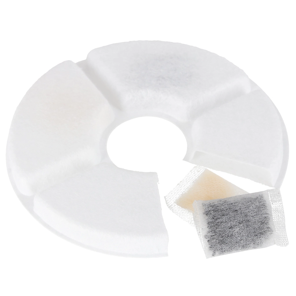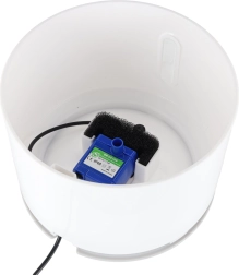 Филтърната вложка с активен въглен постоянно отстранява прах, косми и дребни нечистотии. Лесното USB захранване (DC 5 V / 1 A) и ниската консумация от 1,5 W позволяват тих режим през целия ден. Обемът от 2,4 l е идеален за котки и малки до средни кучета.