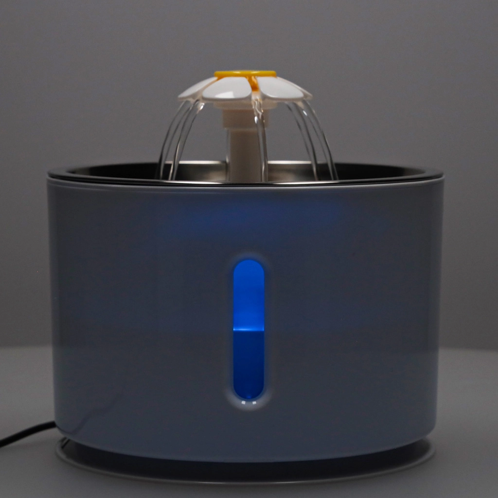 Автоматичната поилка за кучета и котки осигурява непрекъсната циркулация на водата, която благодарение на протичането е по-хладна, по-чиста и насърчава животните да пият по-често. Неръждаемият горен капак е хигиеничен и лесен за почистване, а прозорецът със синя LED подсветка показва текущото ниво.