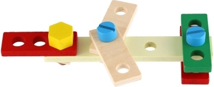 Тази образователна играчка развива фината моторика, координацията око–ръка, както и логическото и техническо мислене. Благодарение на дървената изработка комплектът е издръжлив, приятен на допир и подходящ за ежедневна игра.
