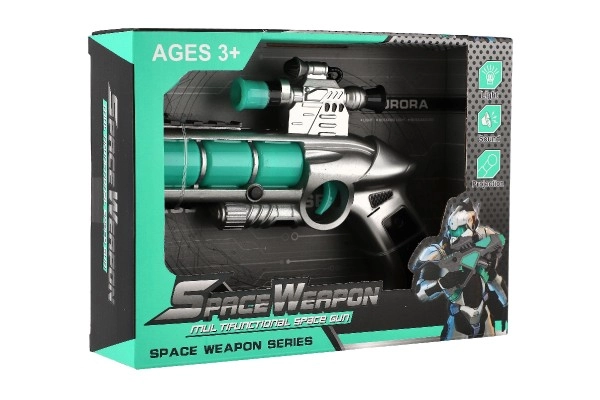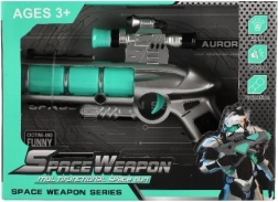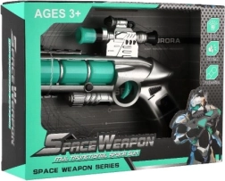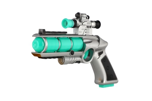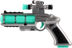 За всички малки любители на играчките-оръжия представяме футуристичния детски пистолет, който е не само естетически привлекателен, но и пълен с функции. След поставяне на 2x AA батерии пистолетът светва и издава автентични звуци. Този интерактивен преживелищен момент гарантира часове забавление: