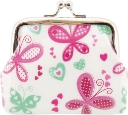 Този момичешки портфейл е перфектен спътник при пътуване благодарение на компактните си размери, които позволяват лесно съхранение в чанта или джоб. Проектиран с мисъл за стил и функционалност, портфейлът има метално закопчаване, което надеждно пази вашите дребни вещи. Цветната и игрива декорация прави този портфейл не само полезен, но и стилен моден аксесоар, който привлича вниманието от пръв поглед.