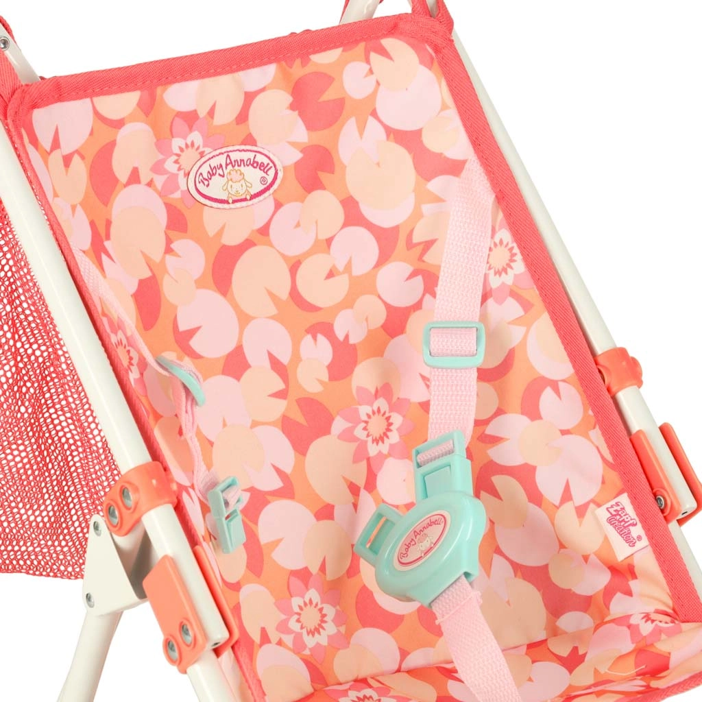 Количката за кукли Annabell подпомага креативната игра, позволявайки на децата да поемат ролята на родител на любимите си кукли. Височината е съобразена с децата, а меките пенови ръкохватки осигуряват комфорт при бутане. Четирите стабилни колелца позволяват плавно маневриране. Сгъваемата конструкция дава възможност за бързо сгъване до компактен размер, което улеснява съхранението и транспорта. Практичната мрежеста чанта добавя реализъм към играта.
