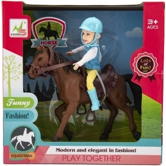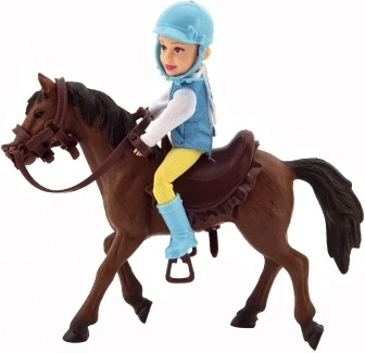 Всички малки любители на конете ще се зарадват на жокей с конче с юзда и седло. Жокеят трябва да има ездачески облекло и каска. Гривата и опашката на коня не са сресваеми. Изработено от качествени и устойчиви материали. Размери на опаковката: 23 x 23 x 9,5 см. Подходящо за деца над 3 години.