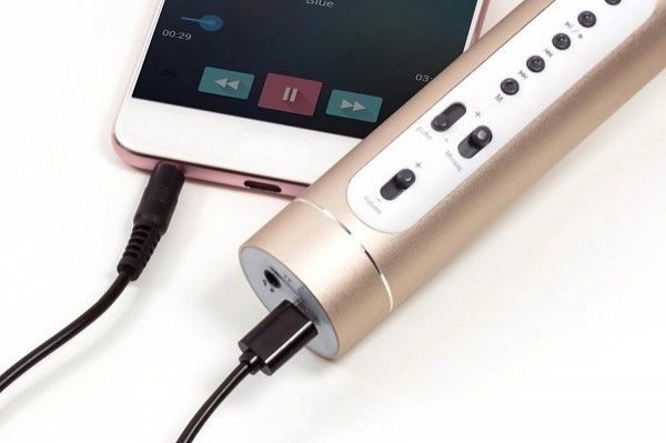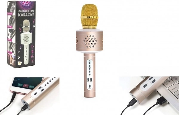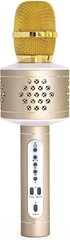 Караоке микрофон Bluetooth с озвучаване и ефект ехо – Златна