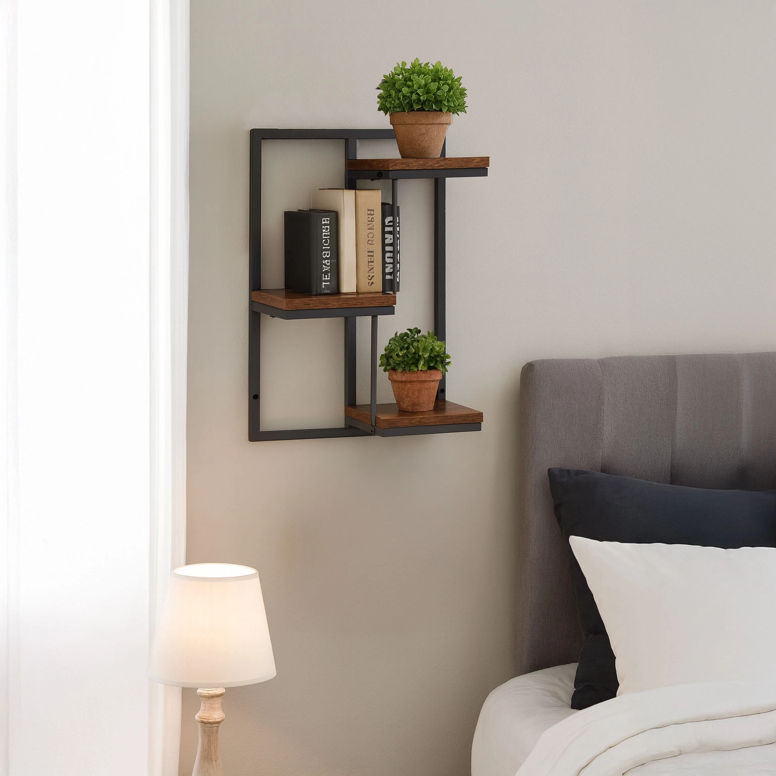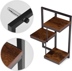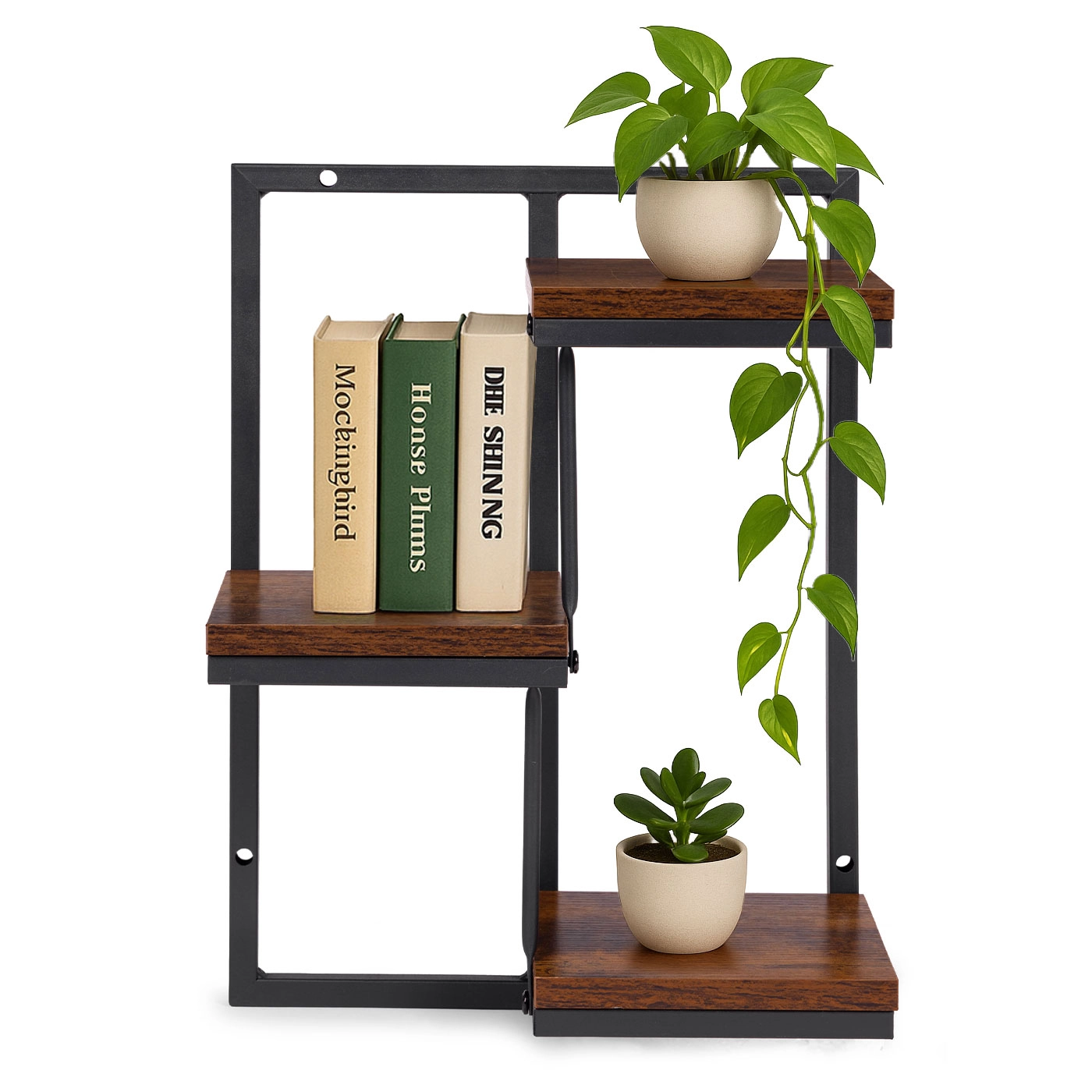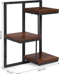 Стилен окачен рафт за растения в loft стил, който комбинира прахово боядисана стомана и дървесен декор за модерен вид и дълъг живот. Тристепенно разположение спестява място и позволява подредено излагане на билки, сукуленти и дребна декорация. Лесен монтаж на стена с включен комплект винтове в опаковката и натоварване до 15 кг гарантират безопасна употреба у дома и в офиса.
