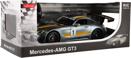 Стилен модел с дистанционно управление MERCEDES-AMG GT3 в мащаб 1:14 предлага реалистично управление с дължина 35 см и надеждна система 2,4 GHz. Контролер във форма на волан, обхват до 20 м и работа до 30 минути го правят отличен избор за деца от 6 години и нагоре, както и за запалени колекционери.