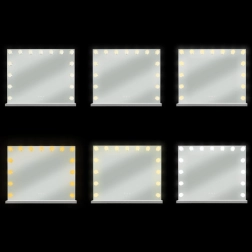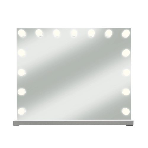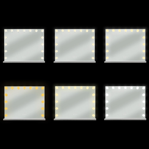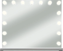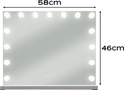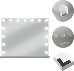 Елегантното козметично огледало Soulima LED 58 × 46 см съчетава стил HOLLYWOOD с професионално осветление. 15 икономични LED крушки, сензорен панел с плавно регулиране на яркостта и 3 цветни температури (топла, неутрална, студена) осигуряват идеални условия за грим, грижа за кожата и оформяне на косата. Голяма повърхност, възможност за поставяне или окачване и двойно захранване USB/230 V го правят практичен и стилен аксесоар за тоалетка или салон за красота.
