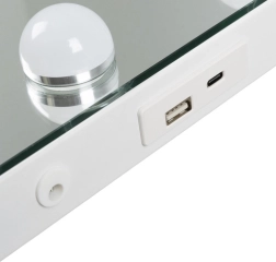 Благодарение на размерите 58 × 46 см ще виждате цялото лице и част от фигурата, което гарантира комфорт при ежедневното стилизиране. Стабилната конструкция от метал, стъкло и ABS изглежда елегантно и е устойчива при дълготрайна употреба. Двойното захранване (USB/230 V) осигурява гъвкавост на разполагане у дома и в салона. Включено е и допълнително увеличително огледалце 10× за максимална прецизност.