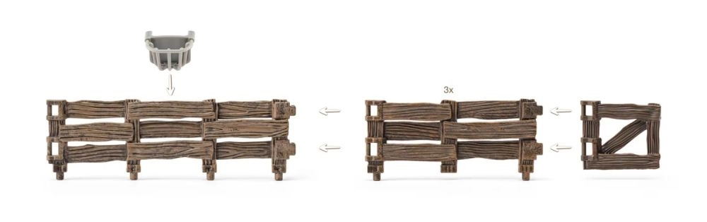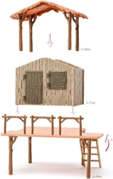 - Пълна сафари станция – хижа на колове, парапет, стълба, ограждения, количка и практични инструменти.