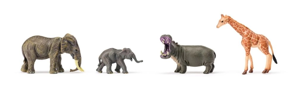 От малки до възрастни животни – комбинацията от слонове, жирафи, зебри, антилопи и хипопотам подкрепя креативни сценарии и дълги часове игра.