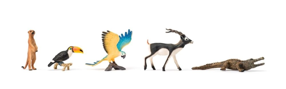 Комплектът съдържа внимателно моделирани и изрисувани фигурки – от величествения слон и жирафа до лъва, зебрата и крокодила. Идеални за игра и за учене на названията на животните.