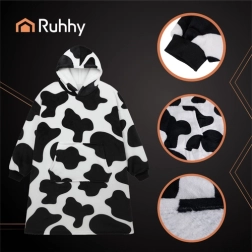 Насладете се на домашния уют с одеялната суичър блуза RUHHY XXL – комбинация от меко одеяло и удобна блуза с качулка. Благодарение на oversize кройката предлага максимална свобода на движение, топла и плътна изработка за хладни вечери и универсален unisex размер, подходящ за всяка фигура. Модерният черно‑бял животински десен я прави стилна както у дома, така и навън.