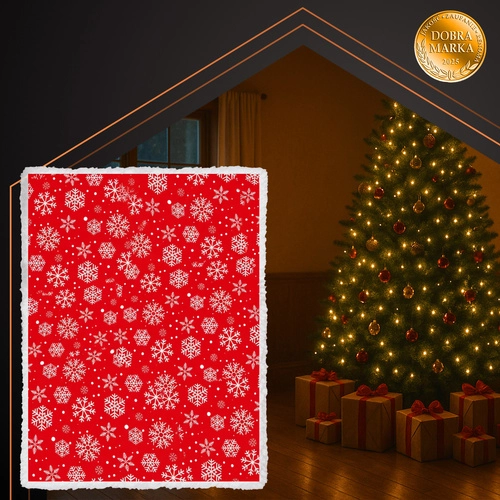 Декорът в червено-бяло прекрасно се съчетава с празничната украса и благодарение на устойчивостта на мачкане и образуване на топчета пледът дълго запазва елегантния си вид. Доставя се с подаръчна сатенена панделка – готов да зарадва като подарък.