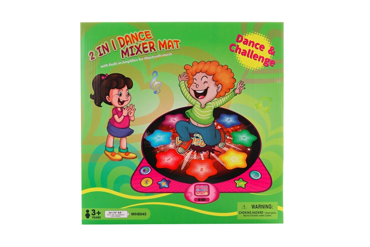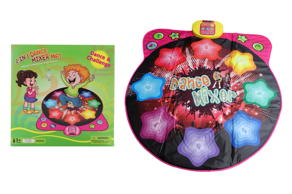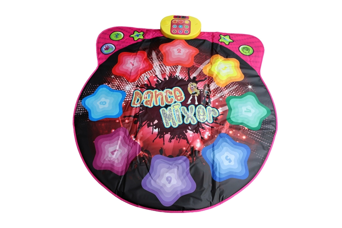 Този интерактивен танцов килим превръща всяка детска стая в малка танцова сцена. Благодарение на Bluetooth лесно пускате любими песни от телефон или таблет, а децата могат да танцуват по ритъм върху 8 чувствителни танцови клавиша. Управлението е лесно, има икони за танцов режим, Bluetooth и силата на звука.