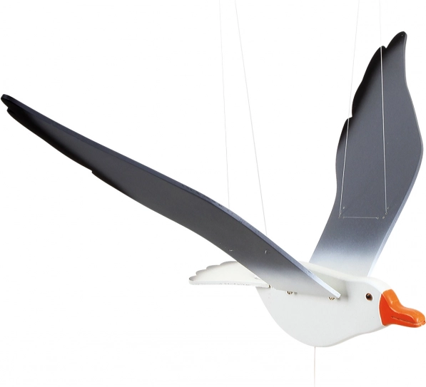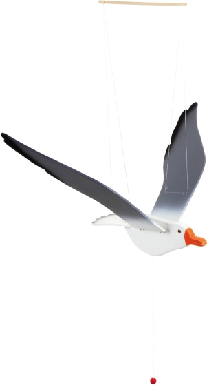 С издърпване на връвчицата с мънисто можете да задвижите крилата и да симулирате полет на чайката.