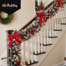 Създайте празнична магия за минути. Гъстите иглички със заснежен ефект изглеждат като истински клонки и осигуряват плътен, елегантен вид на камини, стълбища, перила и входни врати. Благодарение на гъвкавата метална рамка лесно оформяте гирляндата точно според нуждите си.