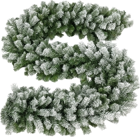 Стилна и гъста коледна гирлянда с дължина 270 см и ширина 29 см внася във вашия дом и екстериор автентична зимна атмосфера. Благодарение на напълно оформяемите клончета от PVC и металното ядро лесно ще я увиете около перила, ще я поставите върху камина или маса, или ще я закачите на врати. Заснежен ефект, HQ качество и дълъг живот без окапване на игличките правят тази гирлянда идеална основа за креативна декорация със светлинки, панделки или орнаменти.